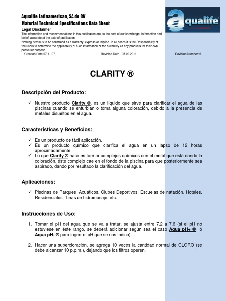 Descripción de la empresa. Descubre todo sobre aqualife latinamerican sa. Para mayor informacion solicite una prueba gratuita. Aqualife latinamerican somos importadores exclusivos de productos químicos para el tratamiento de aguas y mantenimiento de albercas.