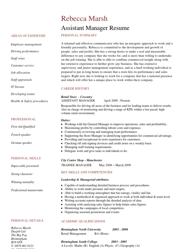 Use your assistant store manager resume objective to show the potential employer you know the job by heart and that you can manage every area of the business without them having to worry about anything at all. Assistant store manager job title. Accordingly you need to create an engaging and memorable resume that separates your abilities from other applicants. Retail store assistants manager offer operational and administrative support to retail store managers. Retail assistant manager location. An assistant store manager renders support to the store manager in achieving the store productivity goals.