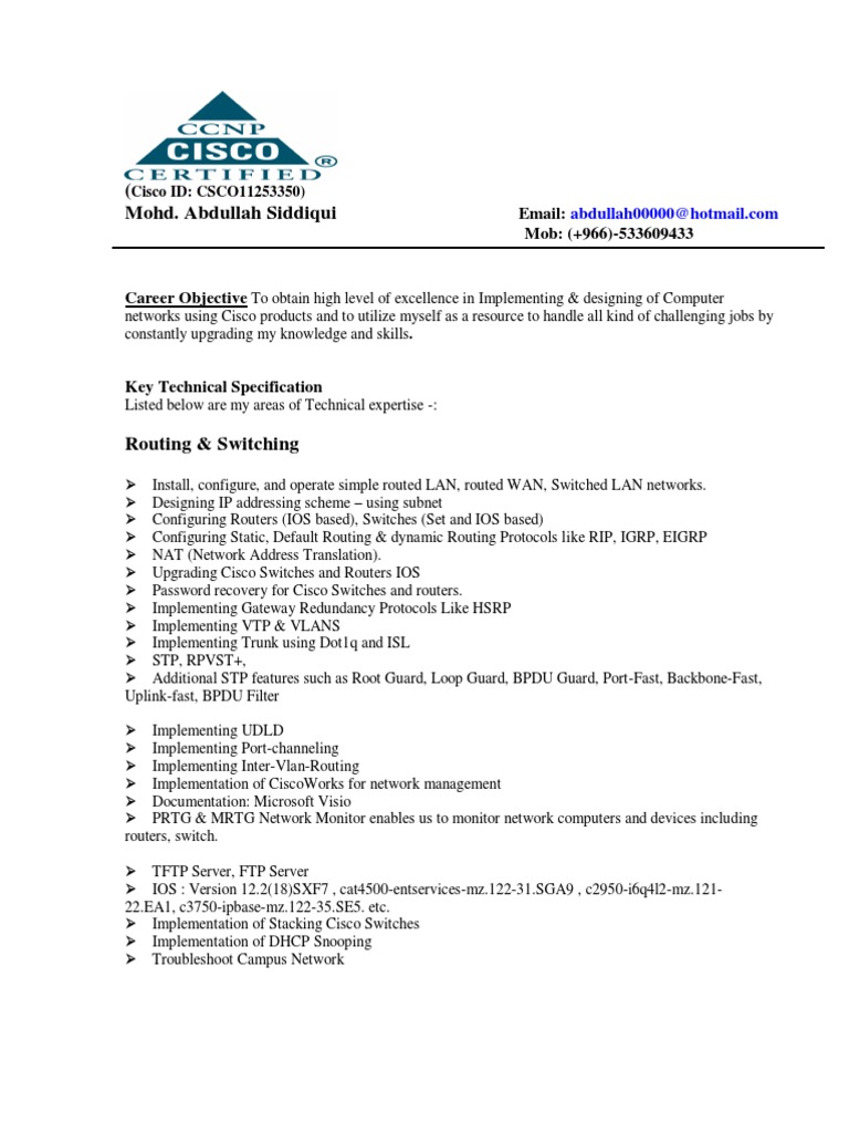 Associates or technical degree with 5 10 years of relevant work related experience babs degree with 3 years of related work experience experience in network design network management detailed documentation testing. Experienced network administrator engineer in network design and capacity planning. 918750004411 918750004411 email protected com. The professionally designed sample will also guide you on the most winning resume format guaranteed to capture the attention of hr recruiting managers. Our cisco network engineer cv sample which is freely accessible is a very handy tool that has been designed to aid you in terms of getting deeper insights into what you should include in your cv. Performed coaching on microsoft certified systems engineer program.
