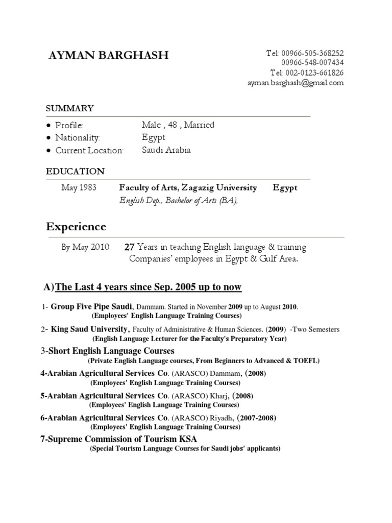 English native speaker french good level italian beginner. All schools in the us. A proven ability to teach motivate and direct students to maximum performance by encouraging a positive and. By starting your cv with a profile that outlines your teaching skills subject knowledge and age group specialism you will get over the first hurdle of grabbing recruiters attention. In addition to local schools and universities there are also opportunities to work as an english teacher in other countriesthere is a great demand in countries such as china japan south korea spain and germany among others. The education section on your english teacher resume is crucial.