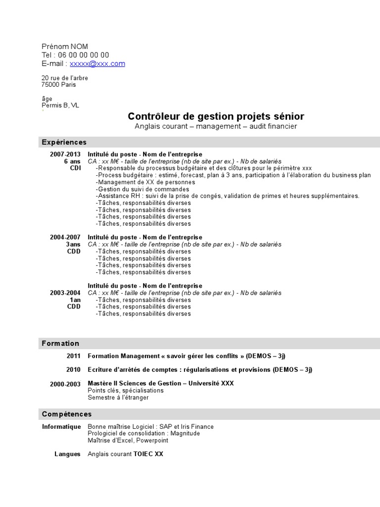 Exemple cv controle de gestion. Voir le cv en format pdf. Voici un exemple de cv parfait et tellement complet quil peut en fonction du recruteur permettre au candidat de se passer du mail de motivation. Simple à télécharger il vous suffira ensuite de compléter les différentes parties avec word. Exemple de cv contrôleur de gestion junior. Ce curriculum a été sélectionné et commenté par bruno fadda directeur associé de robert half international france. Phrase daccroche cv contrôleur de gestion expérimenté contrôleur de gestion depuis parexemple 5 ans poste que jai occupé dans le domaine parexemple bancaire la logistique et la construction.