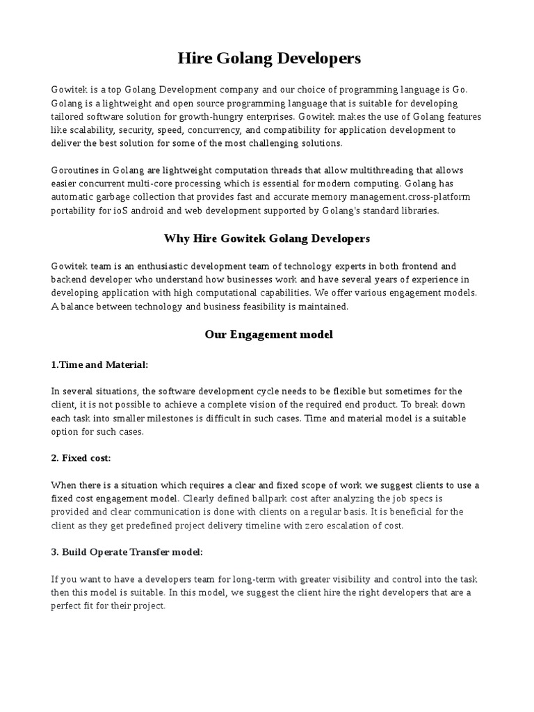 Golang developer 8 years exp required any visa job responsibilities. Over 8 years of experience in information technology with expertise in cc core java python go and unix shell scriptingexperienced in using go technologies on unix and linux platformsdesigned and developed multi threaded c and soap webservicesexpert at sending xml and json data over wire and serializing and de serializing the dataexpert in boost stl containers design patterns. With our guide to golang developer resume youll be able to learn the best practices for describing your skills and experience together with a real life golang developer resume example for 2020. 9 years of it experience in all phases of sdlc like requirement analysis design development testing and implementation. As a golang developer you need to highlight the right combination of skills as well as relevant education or experience. Go lang 5 years aws 5 years heavy oauth experience with infosec processes cve authentication authorization and mfa.