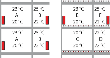 Een cv leiding naar een radiator heeft vaak een diameter van 15 mm in staal of 16 x 2mm in kunststof. Leidingen van 28 en 35 mm komen eigenlijk alleen voor in ruime woningen of bedrijfspanden. Het cv water zal er immers niet warmer of kouder van worden. Bij een cv leiding van 22mm dient het gat 25mm te zijn en bij een cv leiding van 15mm is de gat grote 18mm. Aansluitingen koppelingen etc. Als het oppervlak dan dus.