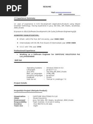 Email protected cell no. Knowledge of object oriented programming and design. Operating systemswindows ntxp2003server linux. You may also want to include a headline or summary statement that clearly communicates your goals and qualifications. This java developer resume article will help you in crafting an impressive resume when you are applying for a java developer role. Training in top technologies.