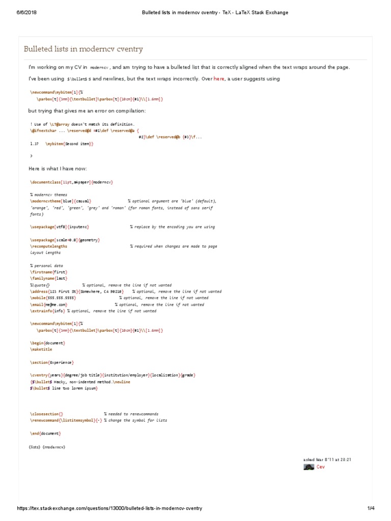 In earlier versions they were named moderncvthemenamesty instead but this got changed which broke my documents until i figured it out. You can edit a bare bones altacv template as well. Writing a modern cv. Moderncv a modern curriculum vitae class the class provides facilities for typesetting modern curriculums vitae both in a classic and in a casual style. Examples of producing a publication list and referees section is provided on the second page. There are only three of these files included.