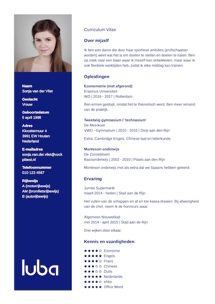 Je kunt deze tips ook gebruiken wanneer je je cv op werk ze. Neem je burgerlijke staat en andere persoonlijke gegevens alleen op als dit echt toegevoegde waarde heeft. Hier vind je meer tips voor het vermelden van persoonlijke informatie op je cv. Een persoonlijke sollicitatiebrief maak online een onweerstaanbare brief binnen 5 min volledig op maat. Het eerste element op een cv heet personalia of persoonlijke gegevens. In deze blogpost gaan we de structuur van jouw cv bij langs.
