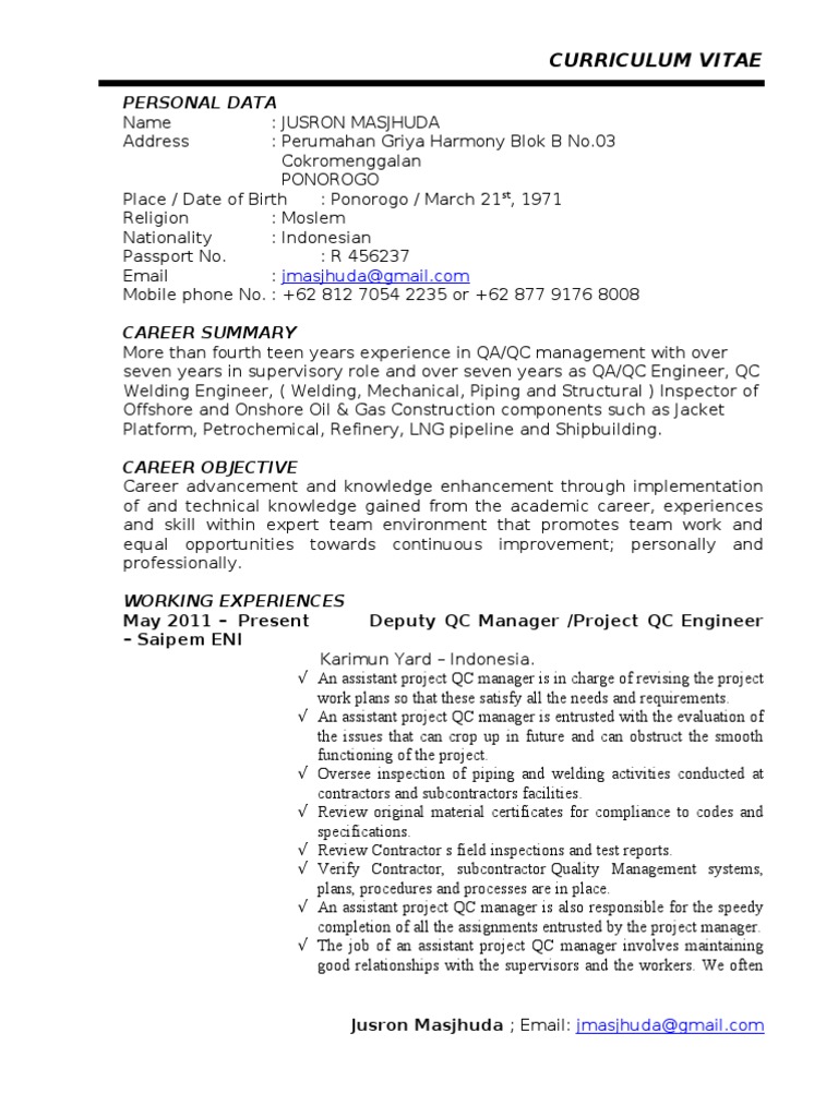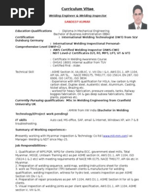 65 91978518 919791585342 profile professional dedicated mechanical engineering professional with a successful 5 years track record as inspection engineer qaqc in mechanical packages pressure vessels heat exchangers process. September 1999 to november 2002. Welding ndt qa qc engineer resume examples samples assist the epc quality team leader in the preparation of fabrication yard and site surveillance plan especially with relation to welding and ndt monitoring activities related to the epc contractors scope of work. Mechanical welding ndt coating e i etc candidate with shell experience would be advantageous 3. Resume of qa qc welding engineer with 5 years of exp 1. 2 qatif bulk plant qatif ksa.