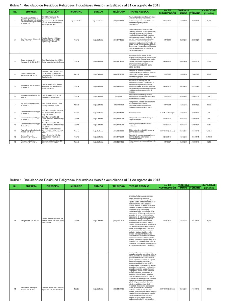 Residuos peligrosos capacitación en medio ambiente contaminación limpieza camino antiguo a chimalhuacán col. Cuenta con certificaciones de industria limpia desde 1997 e iso 9001 2008. De cv tiene presencia en el mercado desde 1990 realizando el reciclado de solventes y tambores manejo y acondicionamiento de residuo.