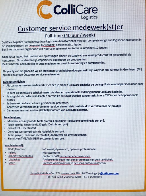 Dit is exact de functie waarnaar ik op zoek ben. Als customer service medewerker beschik je over de juiste dosis commercialiteit overtuigingskracht en initiatief. Je hebt dagelijks contact met de klant en werkt. 25 medewerker klantenservice 1null1 sollicitatievragen. In deze afwisselende en allround functie ben je als customer service medewerker verantwoordelijk voor de administratieve verwerking van alle zendingen en een correcte data entry. Wij zijn op zoek naar een enthousiaste customer service medewerker mv ter versterking van het sales marketing team.