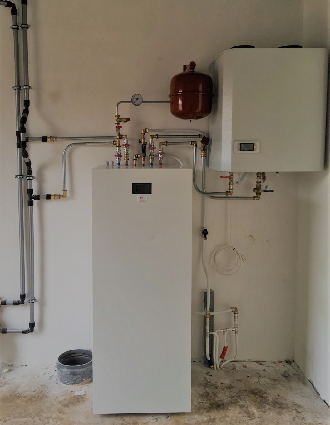Inclusief het expansievat voor je cv installatie en de complete regeling voor het aansturen van de driewegklep de pompen en het elektrische element keurig zijn ingebouwd in een stijlvolle witte behuizing. Warmtepomp zonder buitenunit of bodembron.